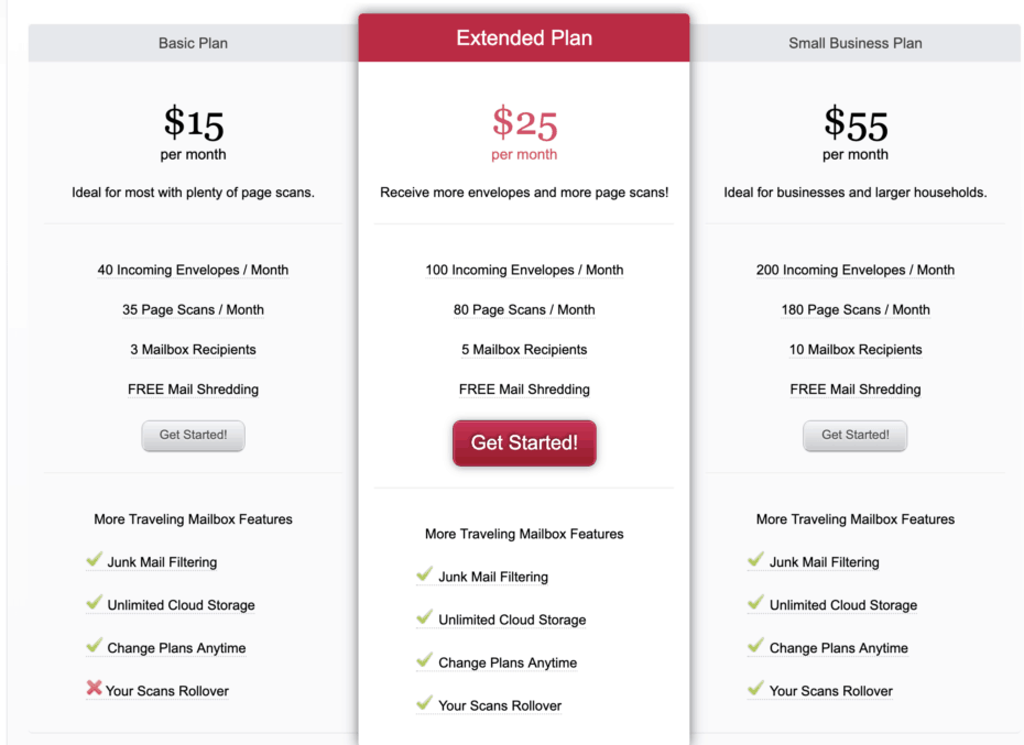 One of the major benefits of Traveling Mailbox is the affordability. As you can see in the image above, there are three tiers you can choose from.