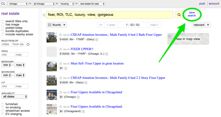In the example above, I used the word “Fixer”, because if a listing includes this word, the owner or listing agent is probably using the words “fixer upper” (or something to that effect) to describe the condition of the property – which means there’s a better chance I’d actually be able to get the property for a price that is far below market value (because obviously, it needs work, and it’s less appealing to the typical retail buyer).