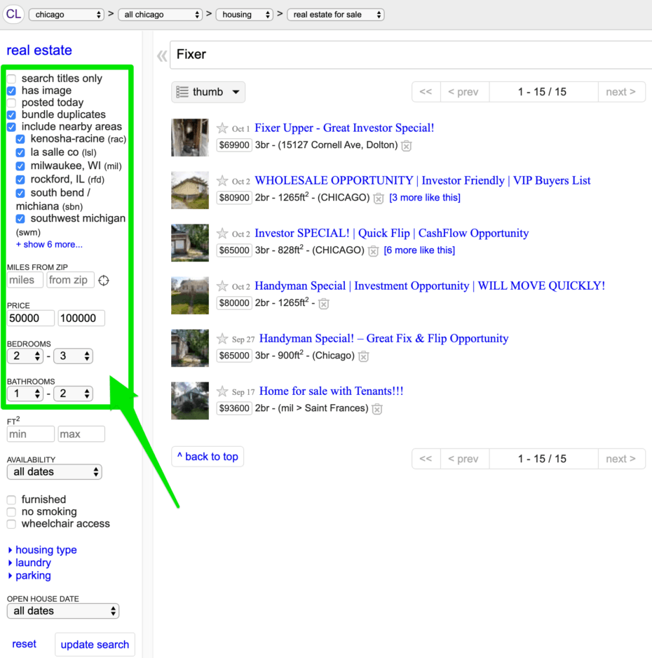 For example, on Craigslist, you start by clicking on the “Housing” section (which will give you access to EVERYTHING related to housing), or if you want to get even more specific, click on the “real estate for sale” section and go from there.