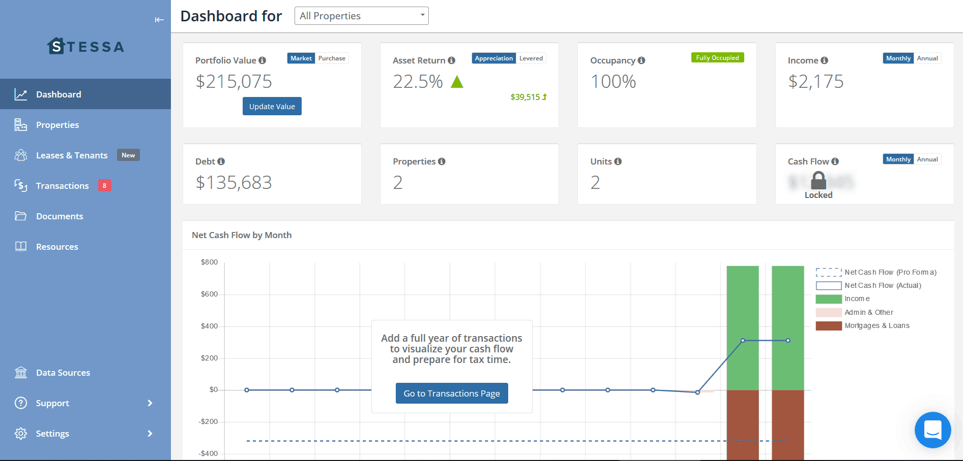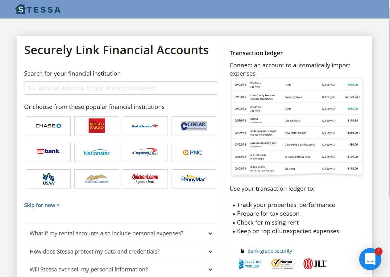 Stessa aims to track all of your financial data and documents automatically, every single month.