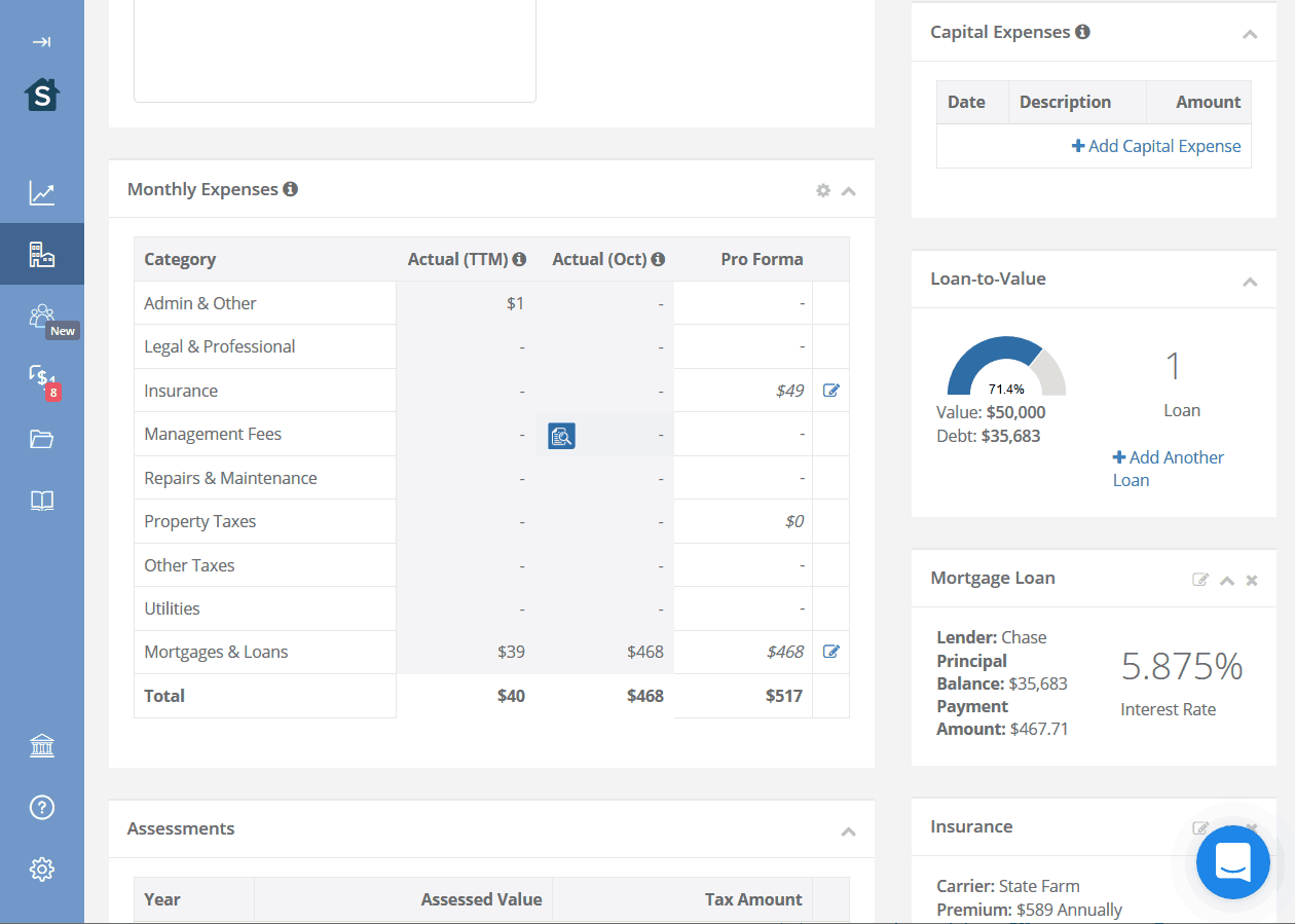 One area I found Stessa a bit clumsy was its failure to retroactively assign transaction data to associate with a specific property. Even with only one property saved in the system, and one mortgage account hooked up, it didn’t automatically register the mortgage as being associated with my one property.